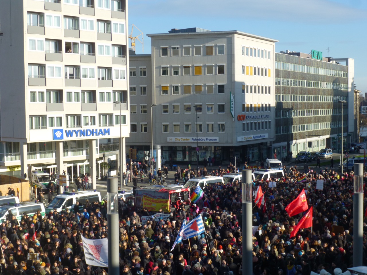 Das Ziel wurde erreicht: Der Breslauer-PLatz war unter demokratischer Kontrolle, der rechte Mob wurde in eine uneinsehbare Ecke verdrängt.