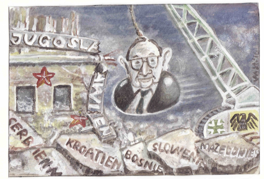 Die übereilte Anerkennung Sloweniens und Kroatiens am 23.12.1991 durch die deutsche Regierung war der Funken, der das Pulverfass der innerjugoslawischen ethnischen und religiösen Spannungen zur Explosion brachte. Damit trägt die deutsche Regierung unter Kohl die Verantwortung für den Ausbruch des Bürgerkriegs in Jugoslawien. Die Bilanz: 200.000 Tote, Millionen Flüchtlinge und immense materielle Schäden (nach Schätzungen zwischen 50 und 200 Milliarden US-Dollar). Die Anerkennung erfolgte gegen den Willen der USA und der übrigen europäischen Staaten und unter Missachtung aller Warnungen unter anderem der UNO. Alle Bemühungen der EG und der UNO, den Bürgerkrieg abzuwenden und zu einer friedlichen Lösung zu gelangen wurde von dem Vorstoß Genschers konterkariert. So hatten am 20.6. 1991 die Außenminister der KSZE-Staaten auf ihrer Tagung in Berlin eine Erklärung verabschiedet, in der sie sich für die Einheit Jugoslawiens aussprachen. Die Zustimmung der übrigen EG-Staaten wurde anschließend mit der Drohung, den zuvor am 10. Dezember von den Regierungschefs ratifizierten „Maastricht-Vertrag“ und die darin vereinbarte gemeinsame Außenpolitik platzen zu lassen, erpresst. Die EG-Außenminister beschließen zum 15.1. 1992 die Anerkennung der Unabhängigkeit der jugoslawischen Republiken.