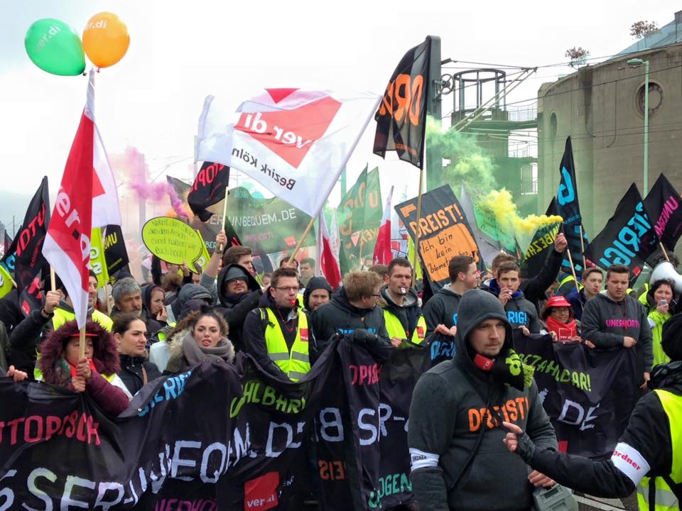 Deutschlands Jugend ist angepasst Köln 27. April 2014. An den beiden Tagen der Verdi-Warnstreiks im öffentlichen Dienst demonstrieren Tausende gewerkschaftlich organisierte Jugendliche zusammen mit ihren Kollegen und werben für ihre Forderungen: - 30 Tage Urlaub auch für Auszubildende,- kostenlose Ausbildungsmittel,- Übernahme der Fahrtkosten,- unbefristete Übernahme nach erfolgreicher Ausbildung im erlernten Beruf,- Erhöhung der Entgelte um sechs Prozent,- 100 Euro mehr Ausbildungsvergütung: „Dreist, gierig, unverschämt“ oder angepasst? Das ist nach Auffassung der Arbeitgeber „überzogen, unverschämt, unbezahlbar“. Darauf antwortet die Jugend mit Fahnen und Transparenten ihrer Gewerkschaft und markiert sich selbst als „dreist“, „gierig“, „umverschämt“, „besser unbequem“. Am selben Tag erscheint eine