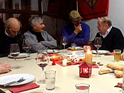 Dienstag, 15. Dezember 2015. Es sah schon schön aus, als wir reinkamen. Und roch gut. Eine Pfanne dampfte, auf dem Tisch lag Gebäck, Kerzen flackerten. Flaschen entkorkten sich. Dirk begrüßte uns gut gelaunt. Klaus versprach zum Thema Krieg gegen Syrien einen Flugblatt-Text. Wenig später gab es eine vergnügliche Leseprobe aus dem Roman „Die Epigonen“ von Immermann. Über eine Schlägerei. Der Schriftsteller Karl Leberecht Immermann (1796 - 1840) war 1827 als Landgerichtsrat nach Düsseldorf gekommen. Kontakt hatte er u.a. zu Heine, Tieck, Freiligrath. Auch Grabbe hatte er eine Zeitlang unter seinen Fittichen, konnte ihn aber nur zeitweilig vom Suff fernhalten. Immermann war mit den Künstlern der Düsseldorfer Malerschule befreundet.